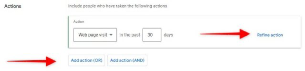 - To be more specific about the web pages people visit, Click “Refine action” to add parameters for web pages on your site where you’d like to collect visitor cookies. You can use words, numbers, or dates depending on the rule you’re making.