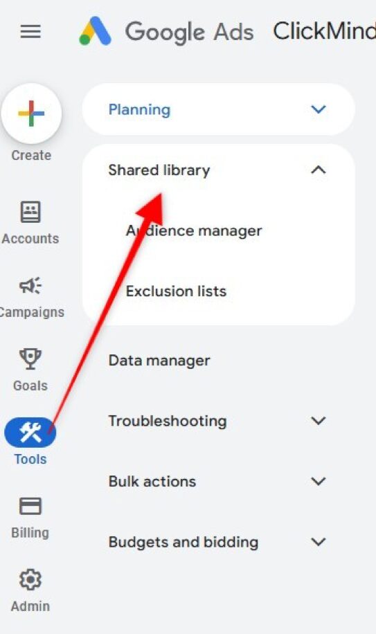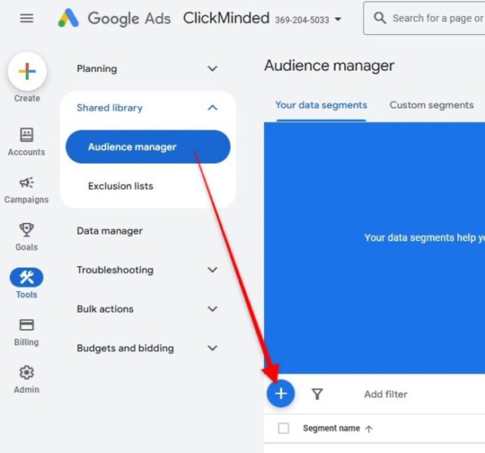 04▸ In the “Shared library”, click “Audience Manager” followed by the “+” icon.
