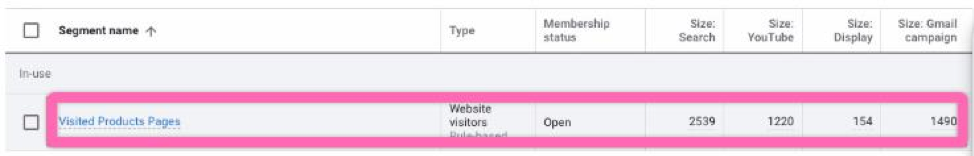 Set up an audience segment that you can use to run remarketing campaigns to drive sales, leads, or traffic to your website.