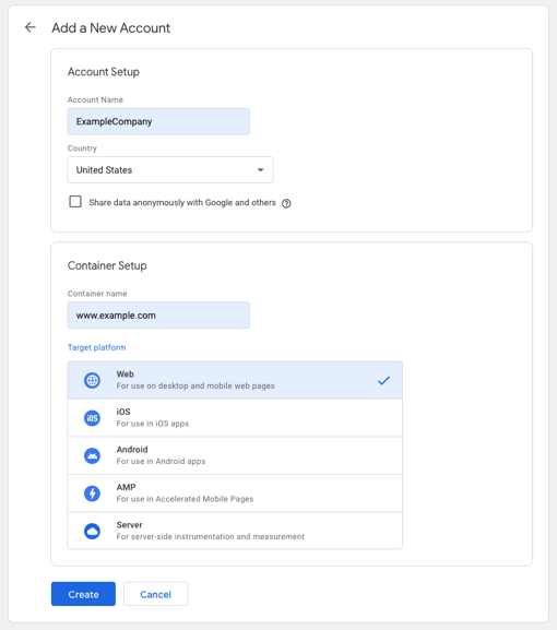 - Target platform — Where do you plan to add Google Tag Manager (e.g. on your website, mobile, etc)