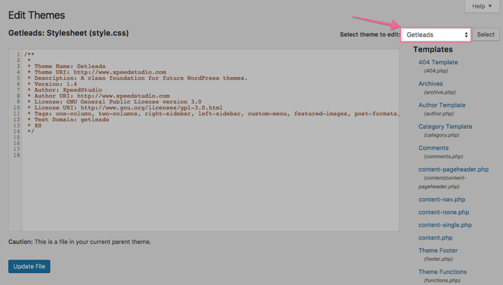 10▸ Make sure that you are editing the theme that you currently have installed on your site (you can go to “Appearance” > “Themes” to check the name of the theme you are using).