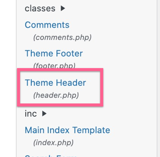 11▸ Select the “Theme Header” template from the list on the right.