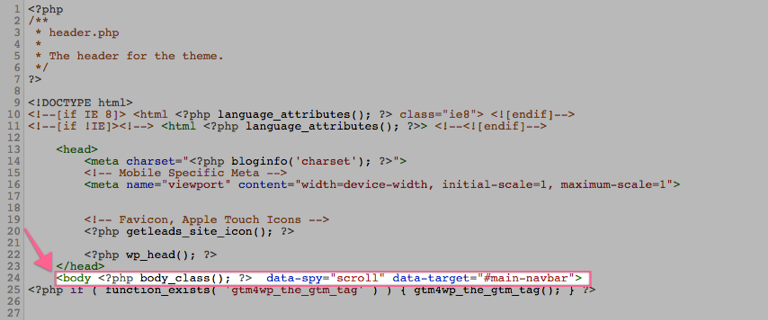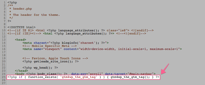 13▸ Paste the PHP code provided by the plugin right below the opening <body> tag.