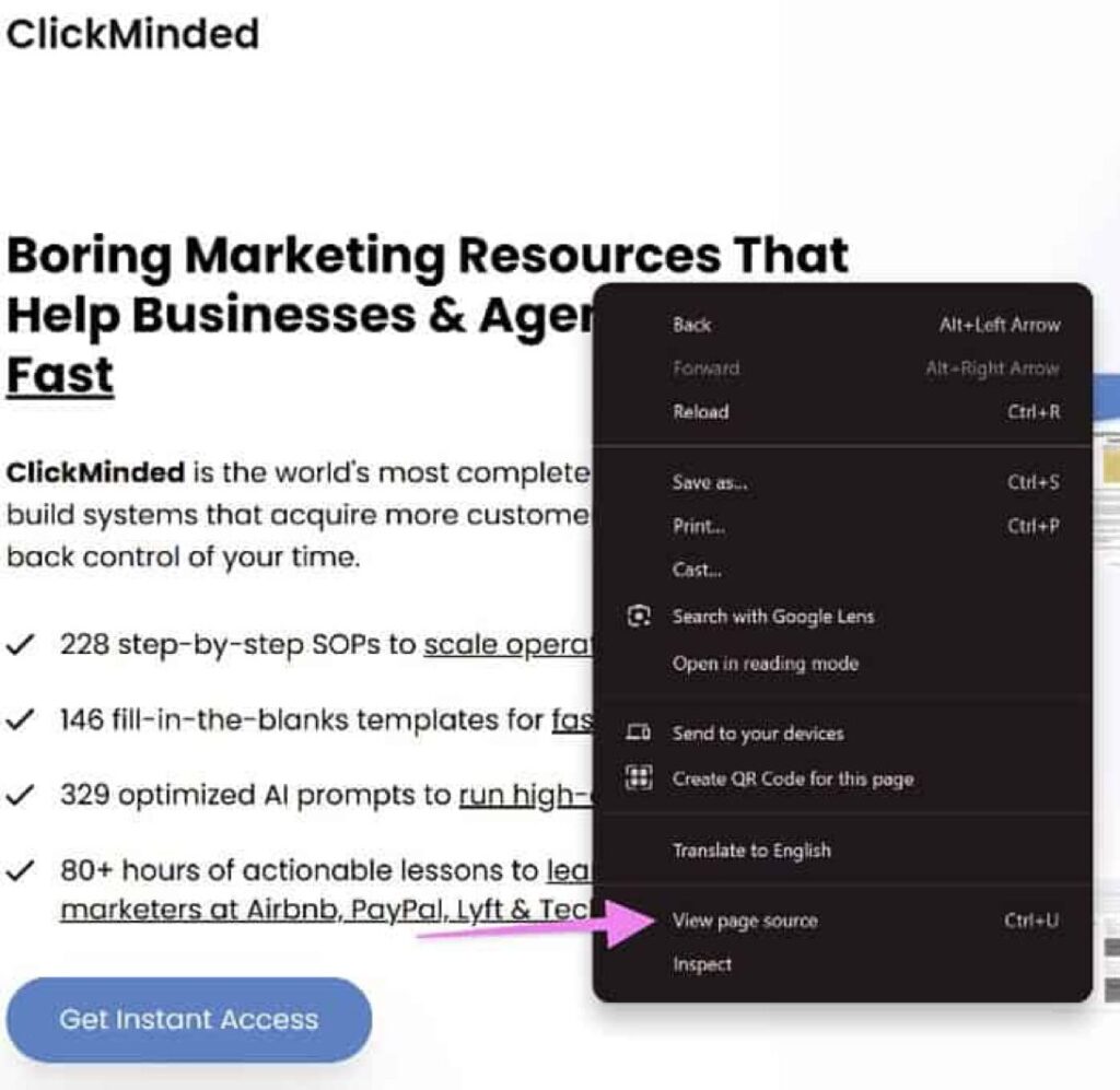 02▸ Right-click on the page and select “View Page Source”.