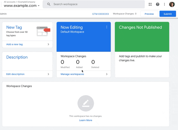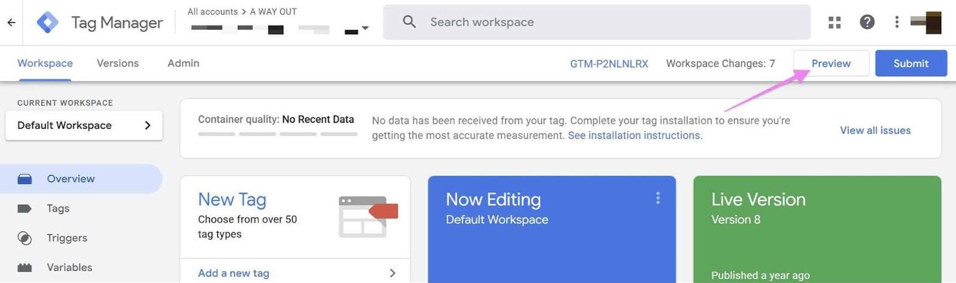 Once you are in your Workspace, make a note of your Google Tag Manager ID.