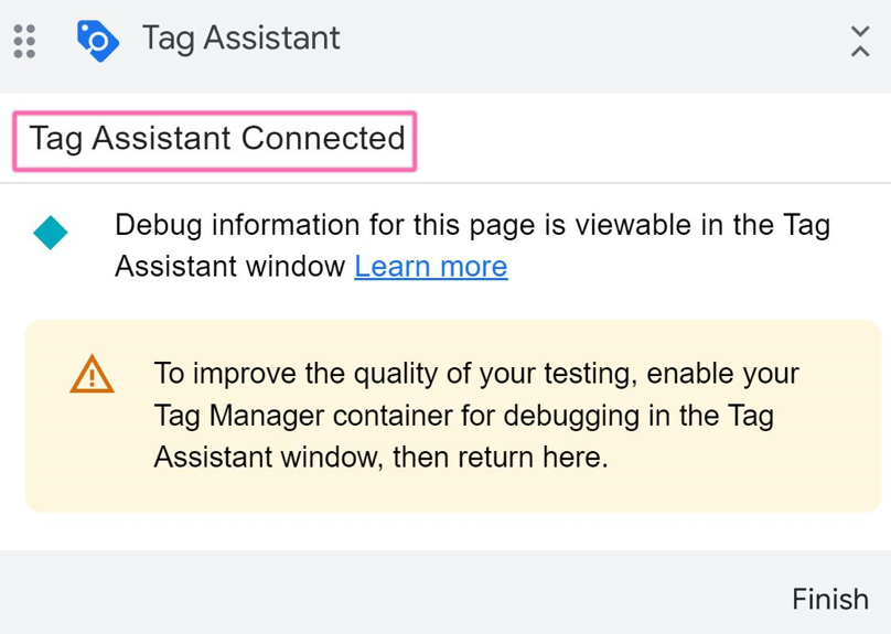 12▸ If successful, a message saying Tag Assistant Connected will appear.