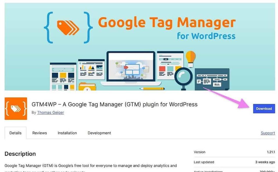 04▸ Install the GTM4WP plugin (the image may vary).