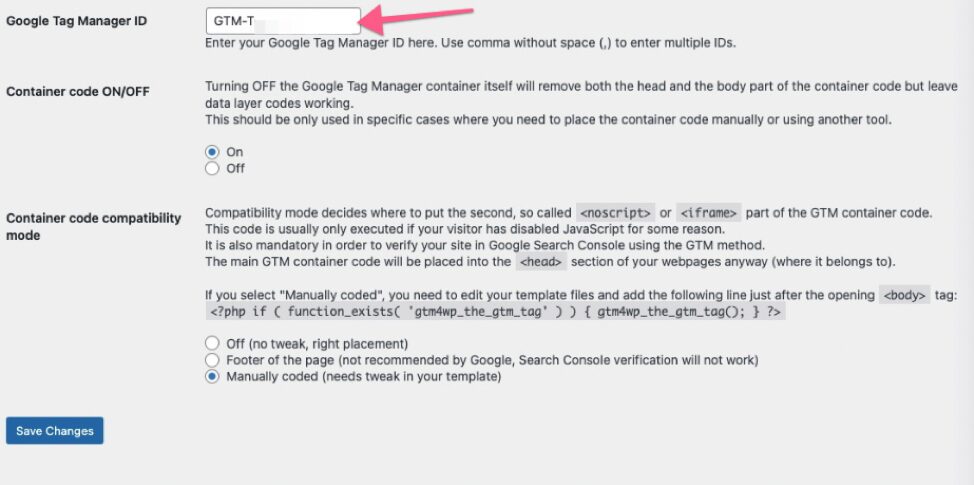 06▸ Paste your Google Tag Manager ID (the one you got from the Google Tag Manager dashboard) in the available field.