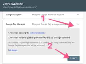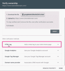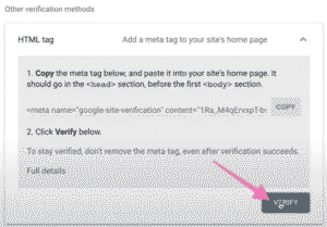 03▸ First, you’ll need to scroll down and copy your “HTML tag” before verifying with Google Tag Manager.